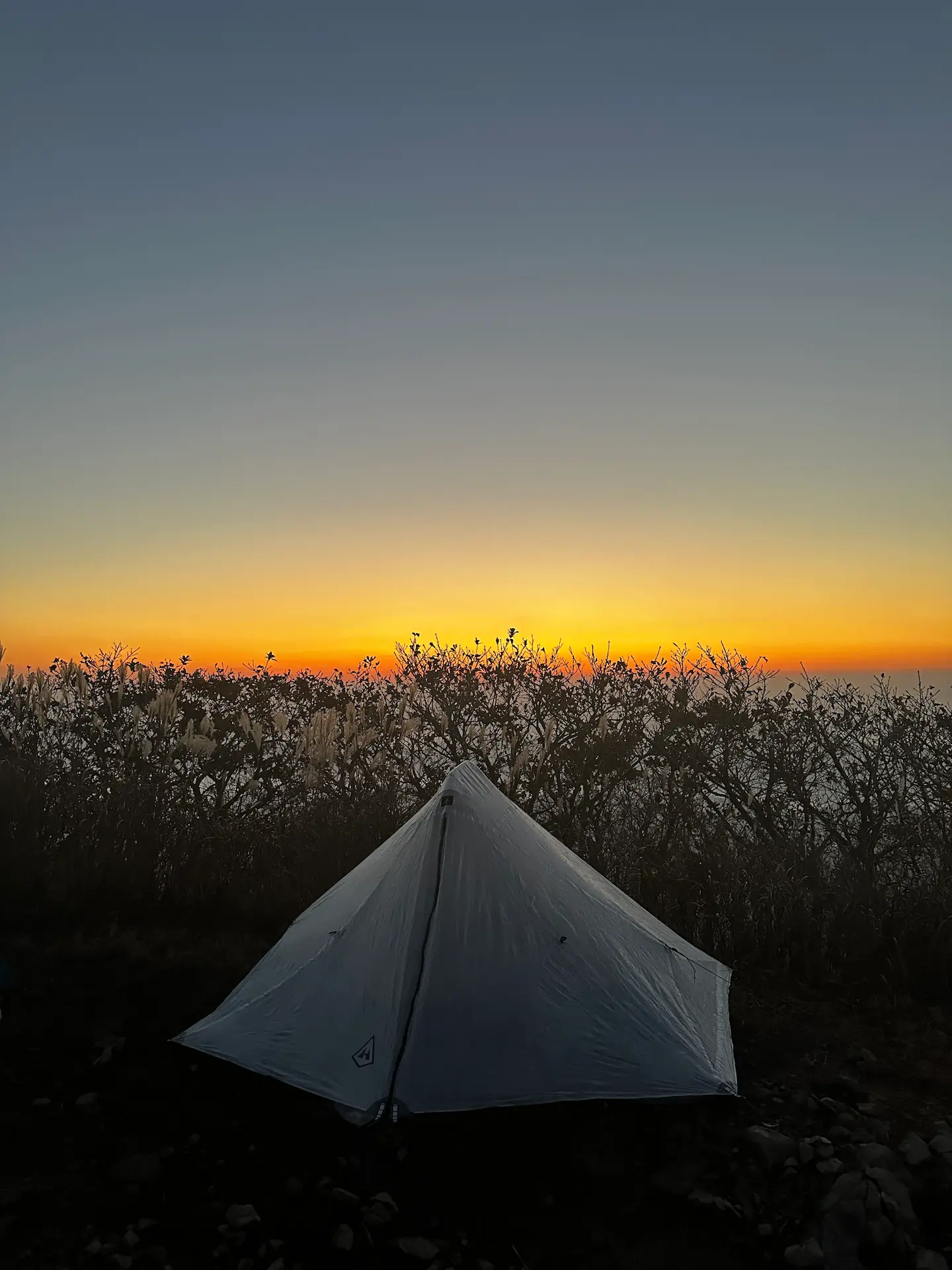 정상에 가까워질수록 억새가 보이기 시작하더니 정신을 차리고 보니 키를 훌쩍 넘기는 억새밭 안에 들어와 있었다. 일단은 날이 더 어두워지기 전에 올라가서 자릴 잡기로.